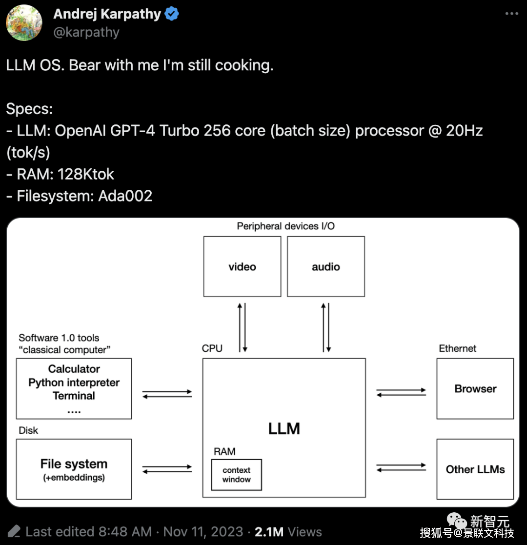自从ChatGPT问世以来,大模型已经红火了整整一年。但在商业落地这块,却还没有实现非常理想的效果。至于原因何在,我们不妨先更全面地了解一下「大模型」落地应用,到底是什么样的。今年11月,OpenAI著名科学家Andrej Karpathy提出了一种全新的理念——「大模型操作系统」。无独有偶,百川智能也有类似的认知,认为大模型时代的计算机主要包含以下几个部分:其中,大模型类似于「CPU」,通过预训练将知识内化在模型内部,然后根据用户的Prompt生成结果;上下文窗口可以看做是「内存」,存储了当下正在处理的文本;互联网信息与企业知识库则共同构成了这个系统的「硬盘」。当我们把它类比成最常见的计算机之后,商业化难的原因就显而易见了。
