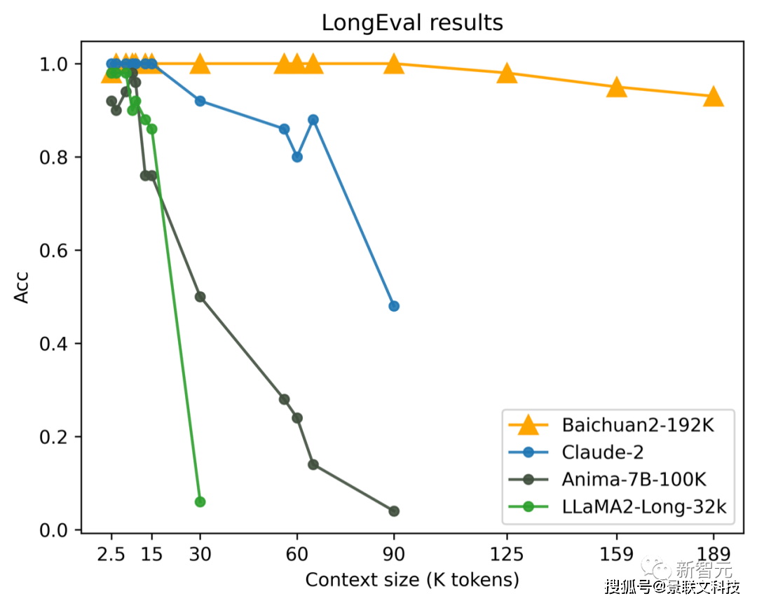 最初的大模型窗口普遍只有2K-8K,对开发者们带来了种种问题,比如不得不将长文本切分成非常小的片段(chunk),模型很容易忘记自己的人设和说过的话等等。百川智能在10月30日推出的Baichuan2-192K,一次可输入35万汉字,是当时全球最长上下文窗口模型,解决了知识库、长期记忆、和超长文本理解等场景问题。然而长窗口并不是万能的。单纯的长窗口模型虽然在处理大量数据时有其优势,但它在容量、成本、性能和效率方面存在明显的局限性。比如,处理超长文档时,会消耗大量tokens,大幅增加推理成本。虽然模型做到了「光速阅读」,但回答问题时每次都把所有资料从头到尾阅读一遍,也会影响效率。而长窗口+搜索增强方式能充分发挥长窗口的优势,扩大模型处理信息的能力,大幅度提高数据处理的效率和精确性。话不多说,直接看结果。目前,由海外知名AI创业者兼开发者Greg Kamradt设计的「大海捞针」(Needle in the Heystack),可以说是业内公认最权威的大模型长文本准确度测试方法。对于192k tokens以内的请求,百川智能通过长窗口+搜索增强的方式,可以实现100%回答精度。如果将测试集再增大两个数量级呢?测试结果显示,当数据集扩展到5000万tokens(大致等于9000万汉字)时,稀疏检索+向量检索的方式依然可以做到接近全域满分——实现95%的回答精度,而单纯的向量检索只能实现80%的回答精度。与此同时,百川智能的搜索增强数据库的表现也十分优秀。在博金大模型挑战赛-金融数据集(文档理解部分)、MultiFieldQA-zh和DuReader三个测试集上的得分均领先GPT-3.5、GPT-4等行业头部模型。通过「大模型+搜索」的完整技术栈,百川智能把大模型时代的内存、硬盘与网络结合做到了极致,充分发挥了成本、性能与效率的优势,为企业应用大模型提供了完整的技术解决方案。可以说,百川智能在引领国内大模型开源生态之后,再次引领行业,开启了企业定制化的新生态!
